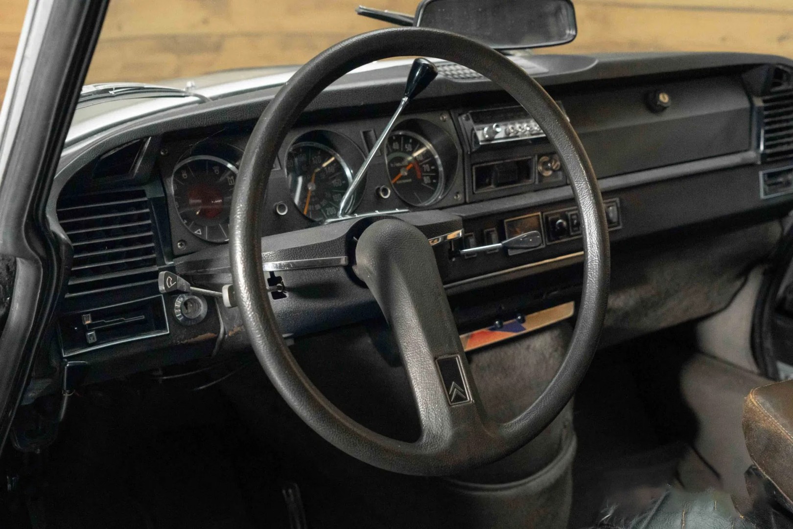 - Однорукой руль с тонким ободом и центральной спицей — символ эпохи и инноваций Citroën.