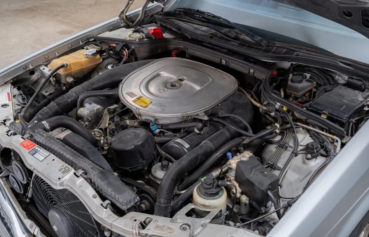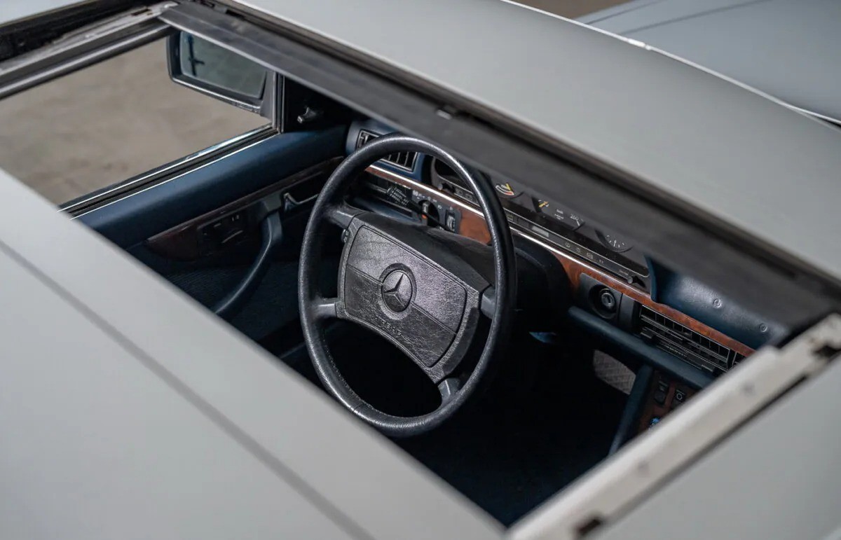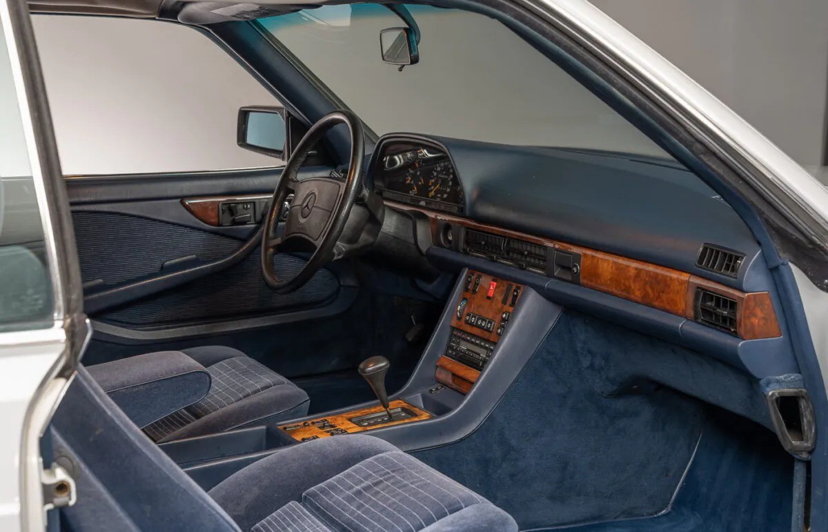 - Заводская аудиосистема Becker, автоматический климат-контроль и подушка безопасности — редкость для своего времени, но стандарт для 560 SEC.