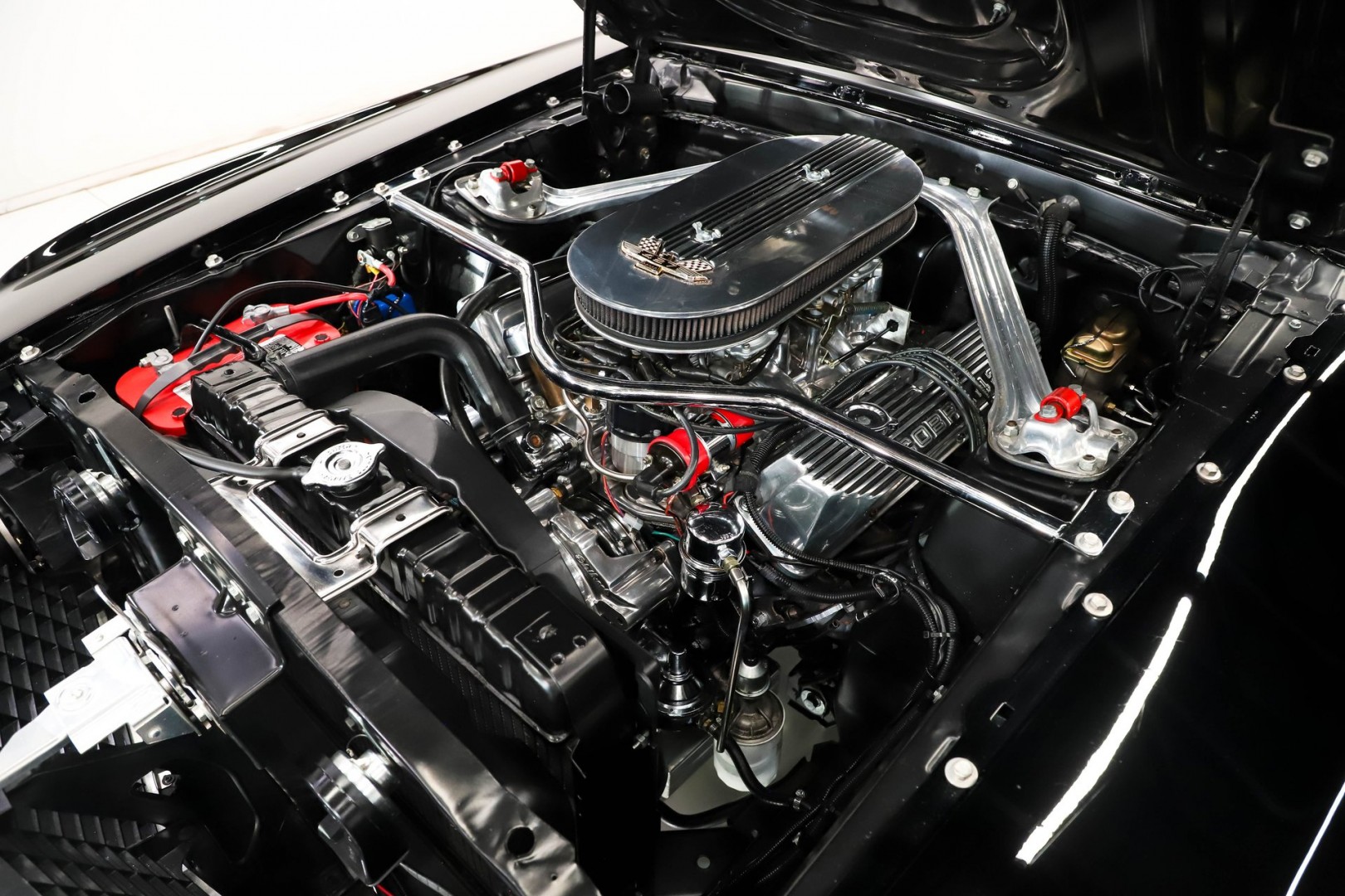 - Интерьер: Заводской «Deluxe» вариант в красном цвете — высокие ковшеобразные сиденья, формованные дверные панели, свежий ковролин и потолочная обивка. Установлены руль в стиле Shelby, колонный тахометр Sun и ретро-аудиосистема. Центральная консоль с Hurst-рычагом — приглашение к драйву.