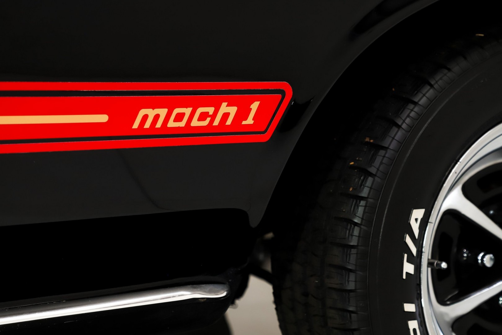 - Фирменные элементы Mach 1: чёрный капот, спойлер, жалюзи и спортивные зеркала — всё в заводском стиле.